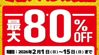 キャンペーン2026年2月2日【オーディン寒河江店・東根店】アパレル冬物アイテム最大80%OFF!!