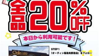 お知らせ2025年11月4日【オーディン福島矢野目店】アカウントフォローでトレカ関連商品全品20%OFF