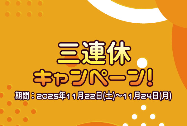 2025年11月22日㈯~24日㈪の3連休開催のセールのお知らせです。