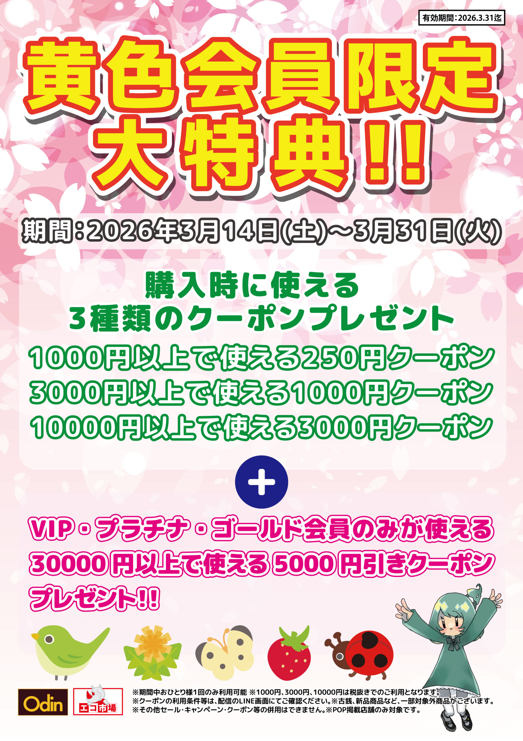 お買い物前に是非黄色会員への入会お待ちしております🍀