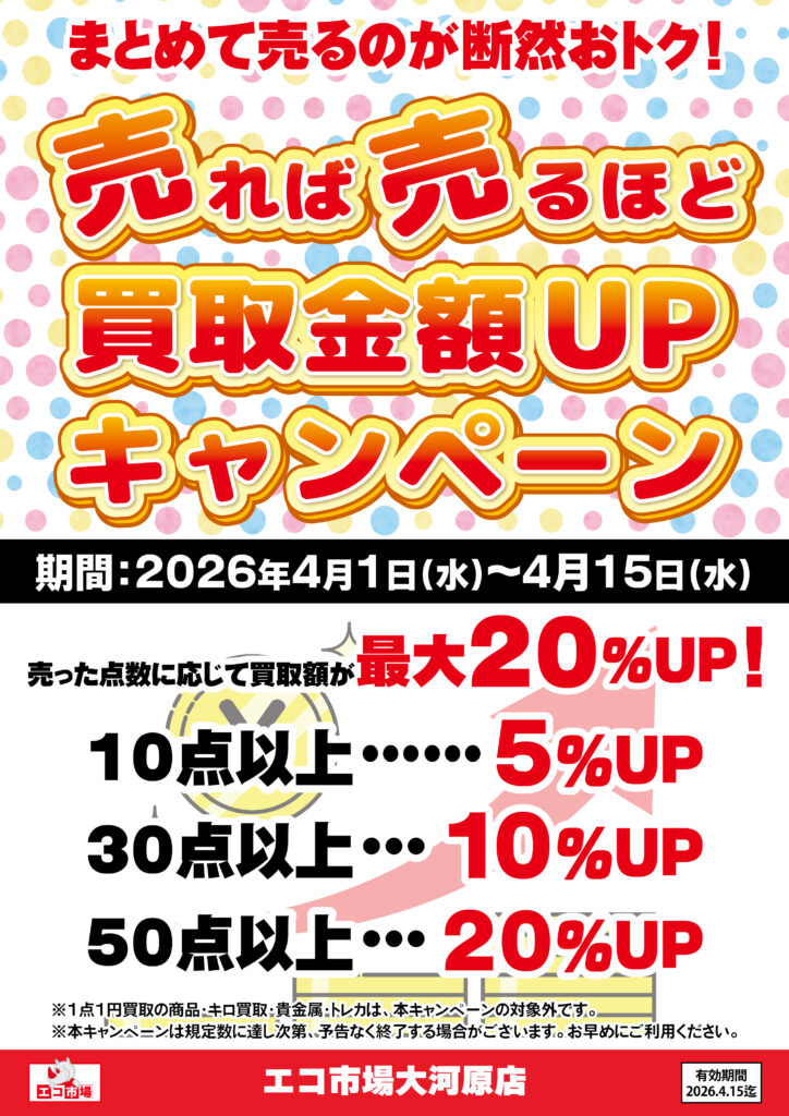 ◤ 売れば売るほど買取金額が上がるキャンペーン ◢ を開催いたします。