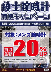 いつもオーディン寒河江店をご利用いただきありがとうございます。この度オーディン寒河江店では期間中、◤ 紳士腕時計買取キャンペーン ◢ を開催いたします。 ■期間2026年4月1日~4月30日 ■キャンペーン内容メンズ腕時 […]