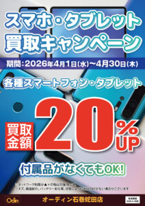 いつもオーディン石巻蛇田店をご利用いただきありがとうございます。オーディン石巻蛇田店では期間中、◤ スマホタブレット買取キャンペーン ◢ を開催いたします。 ■期間2026年4月1日~4月30日 ■キャンペーン内容各種ス […]